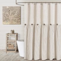 • Linen Button Farmhouse Beige Shower Curtain,Linen and Cotton Woven Fabric,Pleated Brown Stripe,Country Style,72×72 Inch