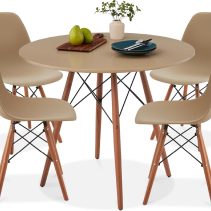 Best Choice Products 5-Piece Dining Set, Compact Mid-Century Modern Table & Chair Set for Home, Apartment w/ 4 Chairs, Plastic Seats, Wooden Legs, Metal Frame – Beige/Walnut